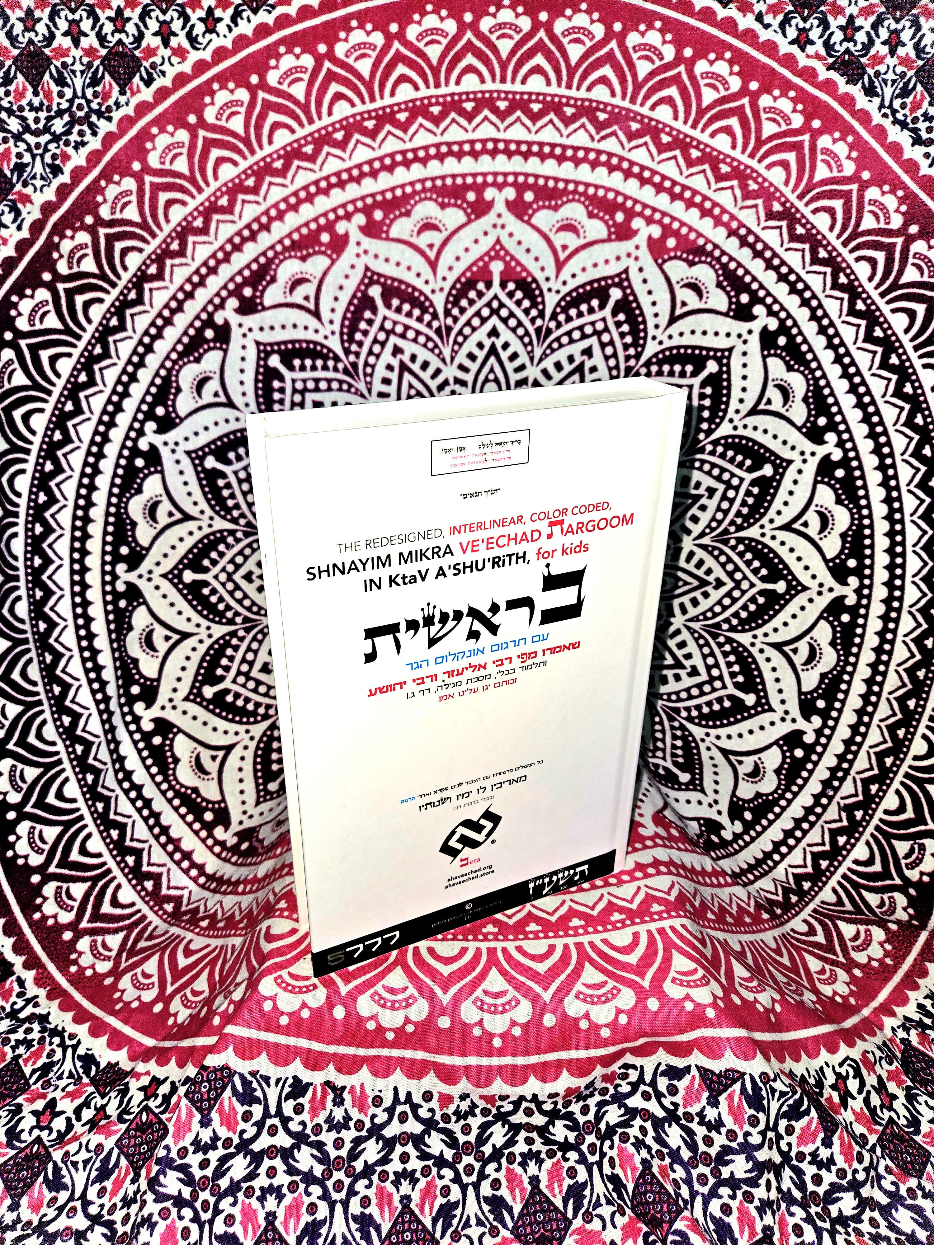 Digital PDF of Beresheath (Genesis) in Ktav Ashurith with interconnected Targoom & color coding. Print for Shabbat or study on any device.