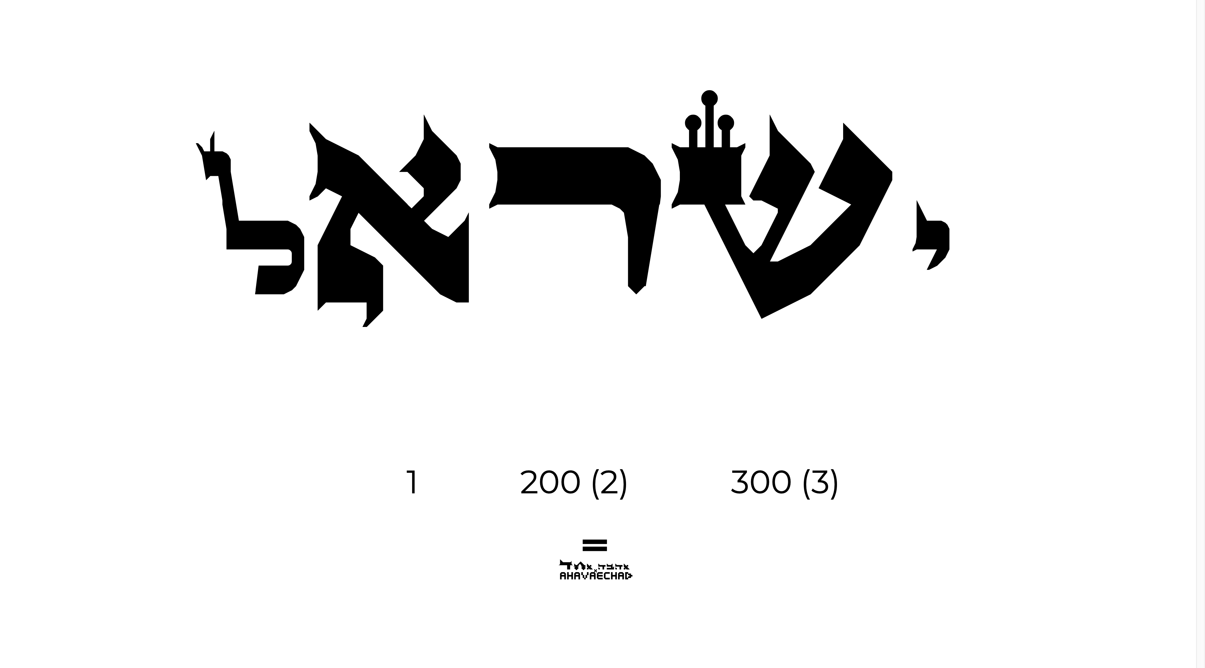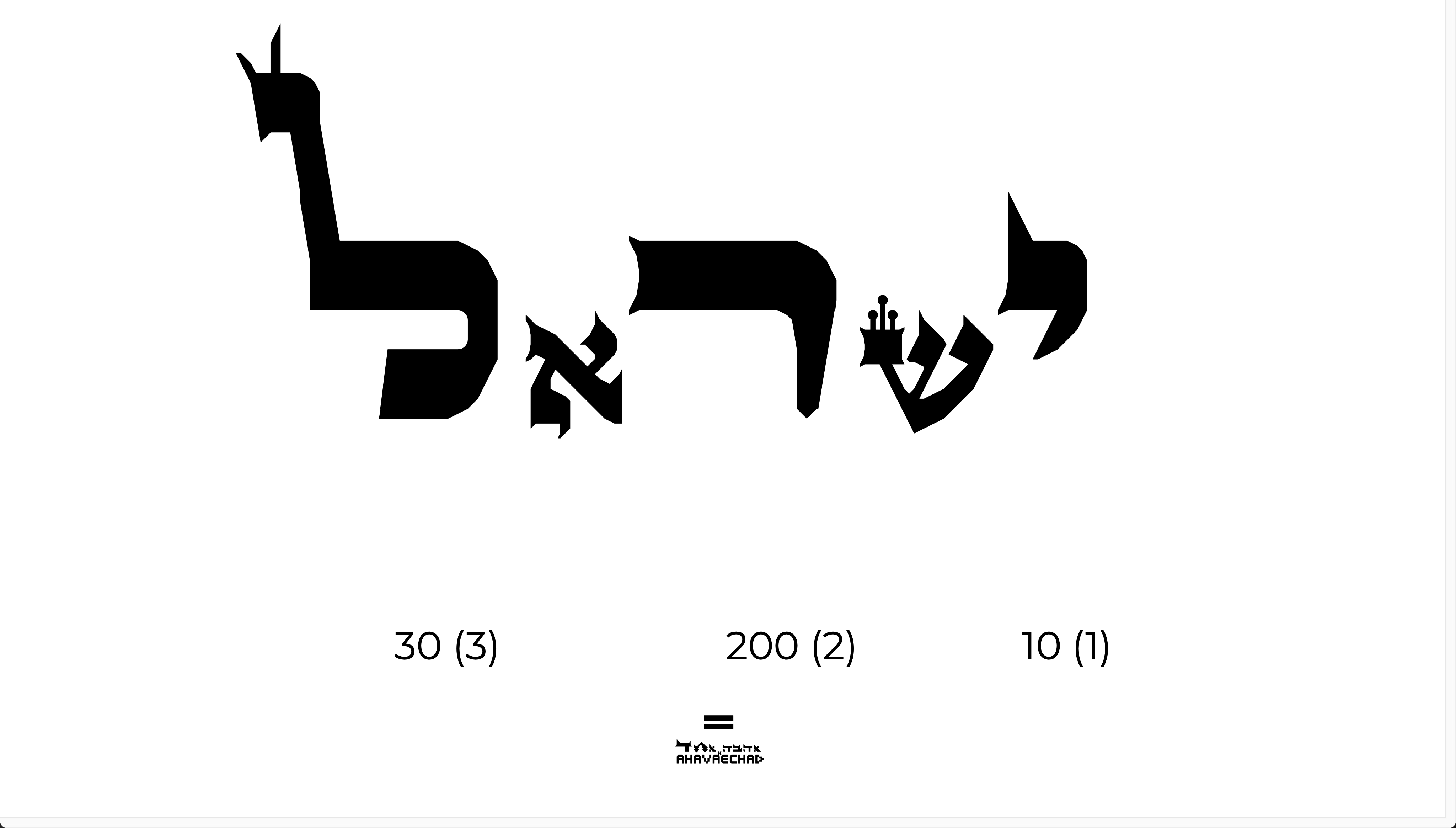 ישראל א=1 ר=2 ש=3 (Shin is 300,