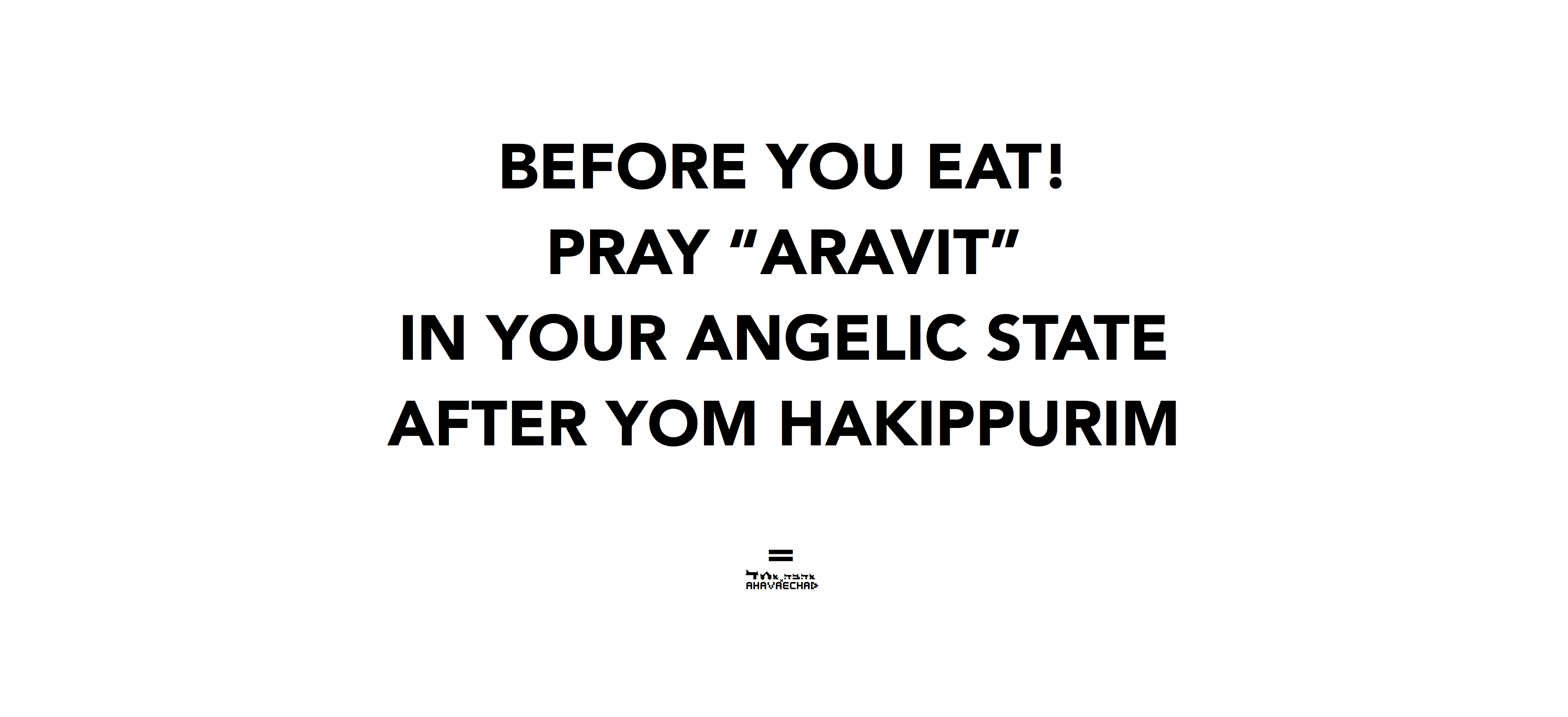BEFORE YOU EAT - *if you can*- Take the opportunity - (having now being cleansed completely & rising to the level of an ANGEL) to pray the very first Prayer After Yom HaKipurim- The first prayer of the new set of 24 hours- which begins at night- so Aravit is really The First Prayer of The Day.